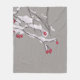 Belle et élégante couverture en polaire d'hiver avec une illustration numérique de branches avec baies rouges recouvertes de neige moelleuse sur arrière - plan gris clair.