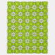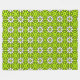 Bright green and white floral-patterned towels with daisies are displayed; one hanging on a rod, the other folded, evoking a fresh, cheerful vibe.