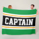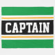 Cette conception sportive et sportive présente du texte CAPTAIN en gras à l'intérieur d'une large bande noire surlignée avec deux bandes de course blanches et jaunes contre des bandes extérieures vertes. Le texte peut être personnalisé.