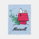 Profitez de ce design de vacances Peanuts avec Snoopy dormant sur sa maison de chien à côté de son arbre de Noël.