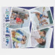 Moderne et mignon pour la fête des pères, un anniversaire ou un cadeau de Noël pour papa, avec 4 photos carrées de votre choix, un overlay blanc en bas avec du texte en gras dans différentes nuances de bleu qui dit "Meilleur papa de tous les temps" avec de petits cœurs mignons de chaque côté. Personnalisez ce produit en ajoutant un message, les noms des enfants et la date en souvenir. Cadeau idéal pour les pères.