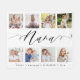 Envoyez un beau cadeau personnalisé à votre grand-mère (Nana) qu'elle chérira pour toujours. Petits-enfants personnalisés photo collage polaire couverture pour afficher vos propres photos et souvenirs de famille spéciaux. Notre design comprend un design simple 8 photo collage grille avec "Nana" conçu dans un style de script noir manuscrit. Chaque photo est encadrée d'une simple bordure dorée. Customisez avec les noms des petits-enfants.