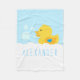 Quack, quack ! La couverture en caoutchouc Ducky With Blue Heart Fleece conçue par Enchantfancy Design Company présente un mignon canard jaune avec un coeur bleu sur son aile. Le canard en caoutchouc jaune flotte sur des bulles de bain. Personnalisez avec votre choix de nom ! Cette couverture fait un cadeau adorable pour bébé.