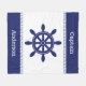 Personnalisez cette couverture de capitaine nautique avec votre nom. Le design présente un dessin de la roue d'un capitaine bleu marine et de la bordure en corde bleu et blanc marine. Le mot "Capitaine" est au-dessus et au-dessous est un nom que vous pouvez personnaliser.
