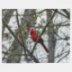 Un cardinal mâle assis dans mon arbre Mimosa au début du printemps.