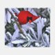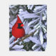 Un beau cardinal rouge se reposant parmi les verdures d'hiver enneigées.