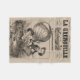 Caricature française du ballon Camille Dartois dans un ballon intitulé Hippodrome, et Bradbury, un artiste de cirque, debout à cheval à l'Hippodrome de Paris.