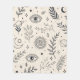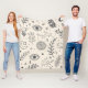 Elegant celestial botanical pattern blanket featuring moons, stars, planets, mystical eyes, and delicate leafy branches in a minimal black and cream style. Ideal for astrology lovers, spiritual seekers, nature enthusiasts, and anyone who loves boho celestial aesthetics.
