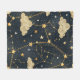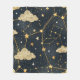 Mystical constellation pattern blanket featuring golden stars, celestial lines, and dreamy clouds across a dark night sky background. Ideal for astrology lovers, stargazers, astronomy fans, spiritual seekers, and anyone who loves cosmic and celestial style.