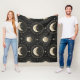 Elegant moon phase and celestial pattern blanket featuring crescent moons, stars, and radiant lunar details on a dark background. Ideal for astrology lovers, moon enthusiasts, spiritual seekers, stargazers, and fans of mystical celestial style.