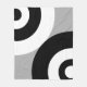 Art Abstrait aux formes géométriques en cercle noir et blanc sur gris.