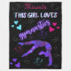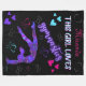 Cette fille aime la gymnastique - Ce design a une silhouette de gymnastique féminine recouverte de minuscules coeurs faisant un pas de ressort arrière hors de la compétence! Au-dessus d'elle se trouvent les mots "Cette fille aime la gymnastique" - "gymnastique" est dans une police de couleur violette avec effet de lumière néon tandis que les autres mots sont dans une bulle de deux tons comme police. En haut, cette couverture est personnalisée avec le nom de votre enfant pour en faire la sienne ! Chargé de coeurs de gribouillis colorés en rose, violet, blanc et turquoise avec deux coeurs spéciaux en argent en haut entourant le nom de votre gymnaste!
