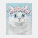 Caractéristiques de conception ce un chaton assez blanc portant un halo rose et bleu de fleur.