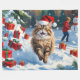 Un chat persan moelleux repose gracieusement dans la neige, orné d'un casquette de Noël rouge classique. La scène hivernale sereine saisit l'élégance et le charme de cette race bien-aimée tout en ajoutant une touche de magie de vacances. Avec sa longue fourrure et son expression calme, ce design festif incarne la beauté paisible de la saison.