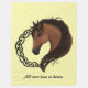 Un profil de cheval brun avec noeud celtique tribal travaille en cercle avec une toile de fond jaune