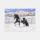 Piebald Noir Piebald Gypsy Vanner Cheval Trotting dans la neige.