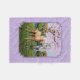 Une jument de cheval gris pomme et son poulain palomino se tiennent dans un champ vert et herbeux recouvert de fleurs sauvages printaniers colorés. Dans l'arrière - plan se trouve un grand et beau cerisier recouvert de fleurs roses et entouré d'azalées et de rhododendrons en fleurs. Le tout sur un arrière - plan à la lavande assorti.