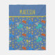 Restez chauds et doucement sous cette adorable couverture en toison. Il présente des illustrations de chèvres en pyjama aux couleurs vives dressées contre un arrière - plan bleu aux étoiles jaunes. Cette couverture est prête à être personnalisée avec un nom en haut en lettres jaunes amusantes.