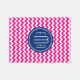Pink and white geometric chevron retro pattern with monogram and blue color accent.
