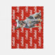 Votre chien mérite une couverture qui lui est propre, surtout avec son nom et sa race. Amusez-vous à réchauffer la saison au coin du feu ou jetez-vous sur le canapé. Un chien de bétail, Blue Heeler ou Queensland à Père Noël casquette avec le nom du chien modelé sur un arrière - plan rouge. CONSEIL : Choisissez Personnaliser pour changer la couleur arrière - plan en une qui correspond à votre décor si vous le souhaitez.