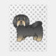 Illustration originale de Destei d'une jolie robe noire et bronzée Bichon Havanais / Chien de race Havanais. L'arrière - plan a un motif d'empreintes de pattes de chien gris.