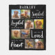 Célébrez votre meilleur ami avec une couverture photo collage mémorial personnalisée dans un design rétro moderne. Cette couverture de tenue de collage photo pour chien souvenir unique est le cadeau idéal pour vous, votre famille ou vos amis à honorer ceux qui vous sont chers. Nous espérons que votre couverture mémoriale de chien collage photo vous apportera joie, paix, et des souvenirs heureux. Citation "Vous avez souri avec vos yeux, Ri avec votre queue, et Aimé avec tout votre coeur". Lorsque vous avez une abondance de souvenirs précieux et qu'une photo ne suffit pas, notre plaque a 6 points photo précieux. Voir "personnaliser ce modèle" pour changer les photos, monogramme initial et nom. Il est préférable de recadrer vos photos centrées avant de les télécharger. DROIT D'AUTEUR © 2020 Judy Burrows, Black Dog Art - Tous droits réservés. Chien Mémorial Personnalisé Animaux Perdre 8 Photo Collage Blanche polaire