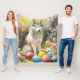 Couverture Polaire Chien sibérien Husky avec oeufs de Pâques vacances