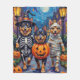 Des lapons finlandais adorables, habillés de costumes d'Halloween ludiques, portent des seaux citrouilles tout en faisant des tours ou en traitant sous le ciel illuminé par la lune. Ce design festif met en valeur l’épais double manteau de la race, ses yeux expressifs et sa personnalité amicale, capturant à merveille l’atmosphère éffrayante et amusante de la nuit d’Halloween. Une fête qui fait chaud au coeur pour les amoureux de les chiens comme pour les fans d'Halloween.