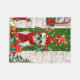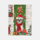 Chih Tzu Dog Noël assis à l'extérieur de la maison décorée avec la couronne de Noël, le sapin de Noël est une idée cadeau de Noël parfait pour les amoureux de les chiens.