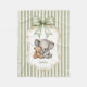 Wrap your little one in the gentle embrace of this adorable watercolor design featuring a sweet elephant and a cuddly teddy bear sharing a hug. The soft sage green stripes create a calming backdrop, perfectly complemented by a charming sage green bow and a vintage-inspired frame. This heartwarming scene is ideal for a baby's nursery or as a special gift for a new arrival. It evokes feelings of warmth, friendship, and tender moments, making it a cherished keepsake for years to come. The watercolor style adds a touch of artistic elegance, while the friendly characters bring joy and comfort.