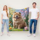 Couverture Polaire Chow Chow Chien Fleurs de printemps Peinture