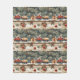 Pretty fleece blanket with a watercolor image of a railroad train and station. It is a winter day with snow on the tracks, red ornaments, red berries and holiday pine branches on a white rustic wood background.