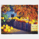 Une scène de récolte de citrouilles vibrantes présente des rangées de citrouilles orange vif disposées à côté de caisses rustiques sous des arbres avec un feuillage automnal riche dans des tons chauds rouges et dorés. La lumière éclatante et les couleurs saisonnières créent une atmosphère cosy et festive qui se sent abondante, joyeuse et visuellement captivante.