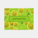 A bright fresh fruity and fleshy design of lemon and lime fruits photographed whole or sliced. Arranged in a zistence, tangy and juicy pattern against a bright, lime green background. Texte en lime green is easily customized to the name of your choice