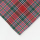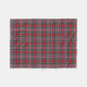 Couverture en laiton avec le tartan Clan MacBean, un motif traditionnel écossais en plaid datant de 1847, en rouge vif, bleu royal, vert de forêt et violet clair aux accents blancs crémeux. Disponible en trois dimensions.