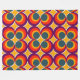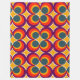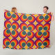 Cette grande couverture en toison a un design moderne du milieu du siècle de cercles concentriques dans les années 1970 couleurs avec des étoiles entre chaque groupe.