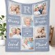 Honorer votre être cher avec une couverture photo de collage commémoratif personnalisée. Cette couverture unique monogrammée initiale et nom mémorial photo keepsaké est le cadeau parfait pour vous, famille ou amis à honorer ceux qui sont aimés. Nous espérons que votre couverture de photo mémorial vous apportera joie, paix, et des souvenirs heureux. Citation " Votre vie a été une Bénédiction, votre mémoire un trésor, vous êtes Loved au-delà des mots, Manqué au-delà de la mesure " Voir 'personnaliser ce modèle' pour changer des photos, initiale et nom. Il est préférable de recadrer vos photos centrées avant de les télécharger. DROIT D'AUTEUR © 2020 Judy Burrows, Black Dog Art - Tous droits réservés. Famille Mémorial Keepsaké Gris Photo Collage Blanche en polaire
