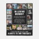 Couverture polaire moderne en hommage mémorial comportant 16 précieuses photos de votre être cher disparu, le texte "En souvenir aimant", leur nom, dates de naissance et de décès, une citation de condoléances qui dit "Se souvenir de toi est facile, je le fais tous les jours. Mais te manquer est un chagrin qui ne s'en va jamais." qui peut être personnalisée et un espace supplémentaire en bas pour ajouter tout autre texte 'À jamais dans nos cœurs et toujours dans nos pensées'. Cette couverture a une valeur sentimentale et est un cadeau de souvenir de condoléances très spécial pour quelqu'un qui est en deuil.