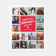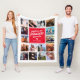 Une couverture fleurie personnalisée pour couple/jeunes mariés avec un arrière - plan blanc immaculé qui peut être changée en n'importe quelle couleur, 16 photos de votre choix, un carré rouge avec le nom du couple, un symbole de coeur blanc, et le texte sucré qui dit "ensemble est notre endroit préféré pour être".
