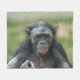 Portrait de gros plan d'un bonobo, dressé contre un arrière - plan vert vibrant