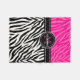 Conception élégante moderne comportant un motif rose girly lumineux de rayures de zèbre sur le dessus et le motif noir et blanc de poster de animal sur le fond. Personnalisez-le avec votre nom et monogramme. Option de luxe pour la femme à la mode ! Idéal pour des amoureux des animaux