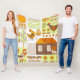 Couverture Polaire Coq et deux poules, oeufs, fleurs, maison, drawin