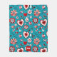 Couverture Polaire Coquette, floral et coeur turquoise monogramme rou