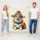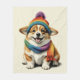Une couverture douce et cosy avec un adorable chiot de corgi à l'expression joyeuse, portant un casquette vibrant et coloré et un foulard assorti. Parfait pour ajouter de la chaleur et de la gentillesse à n'importe quel espace !