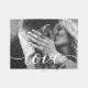 Personnalisez cette photo de couverture avec votre propre pour un cadeau réfléchi. Élégant, moderne et unique script pour le mot "Amour" avec de longues échasses à queue. Pour les jeunes mariés, copain et petite amie couple ou couple anniversaire.