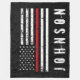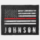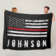 Un nom fait sur commande a affligé la couverture d'ouatine dénommée par sapeur-pompier de drapeau américain de style. La ligne rouge mince fonctionnant à travers le centre est représentant des professionnels de sapeur-pompier. Suivez les directions dans la barre latérale pour ajouter votre nom et pour le faire sembler parfait sous le drapeau.