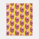 Une jolie couverture motif au crâne avec un dessin animé illustrant un crâne rose drôle avec des pommettes roses et deux mignons fantômes dans ses prises de vue se regardant et souriant, petite araignée adorable debout sur le sommet d'un de ces amis éffrayants. Ce design macabre amusant a des couleurs lumineuses psychédéliques, roses et jaunes.