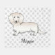 L'illustration originale de Destei d'une adorable robe de crème capillaire couleur Dachshund race dog. L'arrière - plan a un motif d'empreintes de pattes de chien gris. Il y a aussi une zone de texte personnalisable pour un nom.
