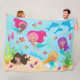 Admirez votre petite fille avec cette adorable couverture de sirène personnalisée. La couverture est composée de cinq sirènes, assis, nageant et s'amusant. On y trouve aussi des dauphins, des poissons colorés, des hippocampes, des coquillages et de l'herbe marine. Les dauphins ont une famille de dauphins (maman, papa, bébé), et les hippocampes ont aussi un parent et un bébé. Les sirènes ont des cheveux mignons et brillants de rose, violet, brun et jaune. Customisez la couverture avec le prénom de votre jeune. Cette couverture ravira tous les enfants amoureux de sirènes et est un cadeau parfait pour les baby showers, anniversaires et vacances.
