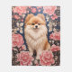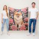 Couverture Polaire Cute Chien Poméranien Rose Floral